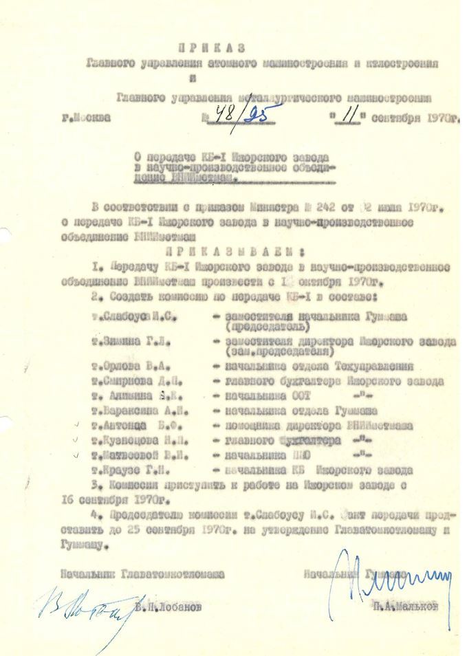 Архивные документы о создании "КО ВНИИМЕТМАШ":